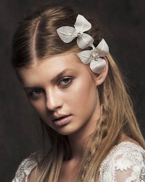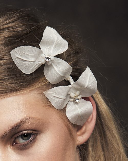 Best seller alert! Two sheer silk Bougainvillea flowers, crafted with our secret technique at our studio. This piece is part of our Crop collection. Is attached to a hair comb and may be positioned in various ways in different hairstyles. Each flower has a special Swarovski center.